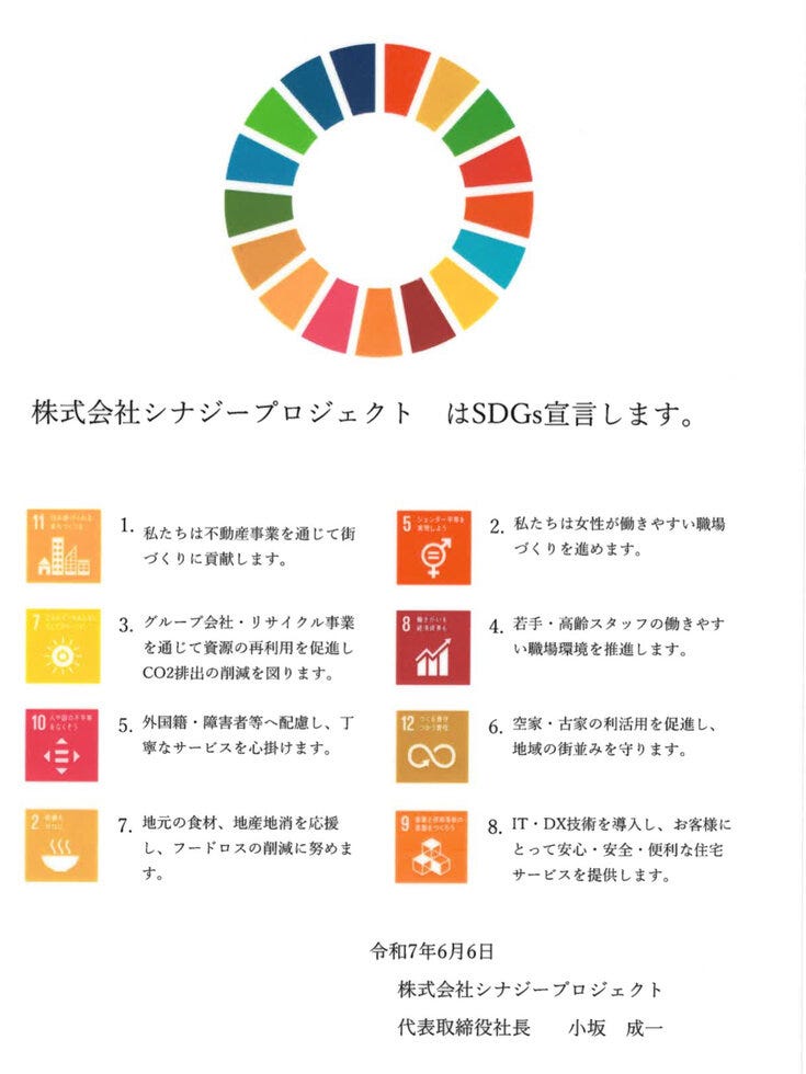当社、株式会社シナジープロジェクトでは、SDGs宣言したことをお知らせいたします。